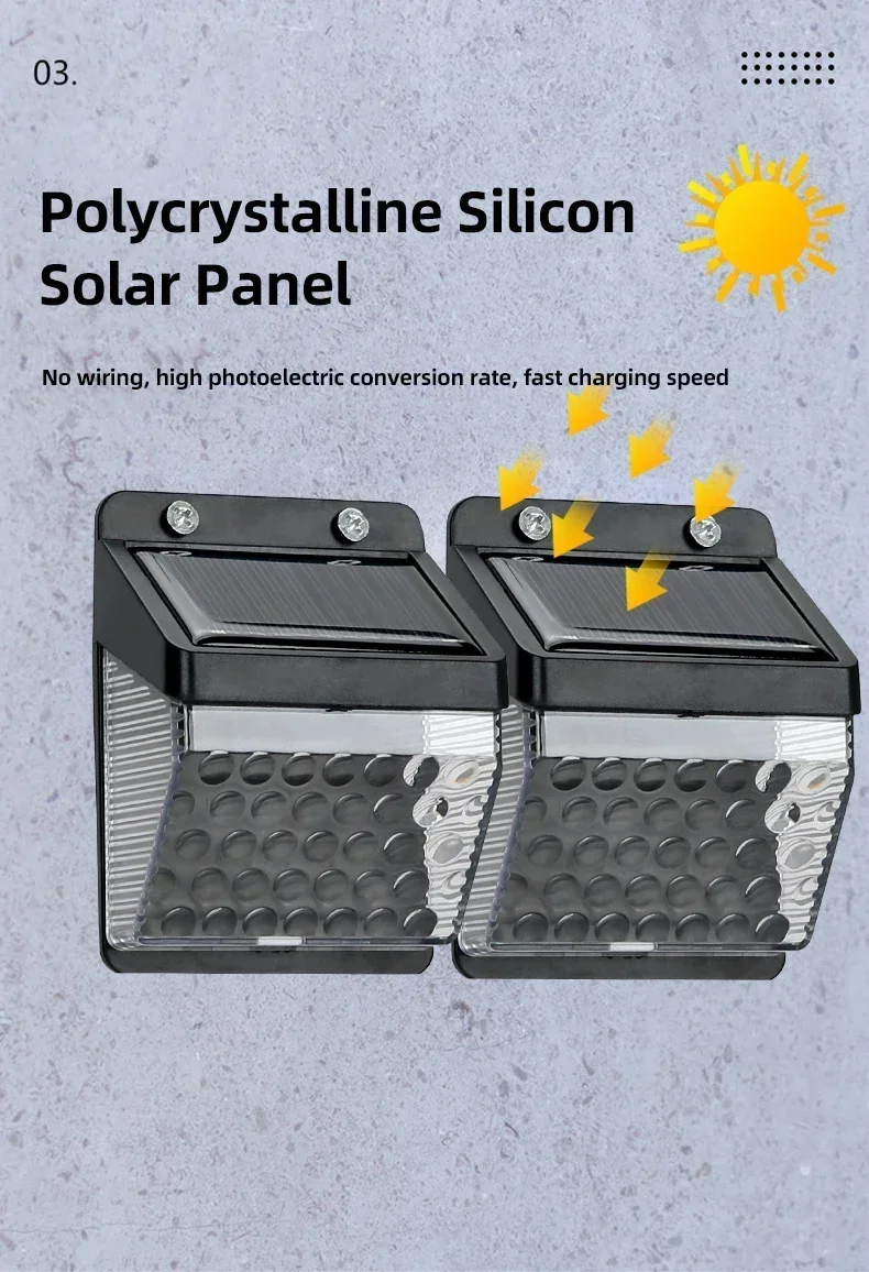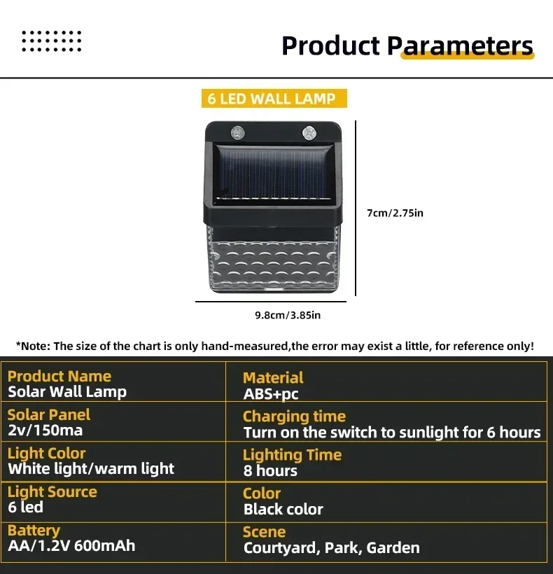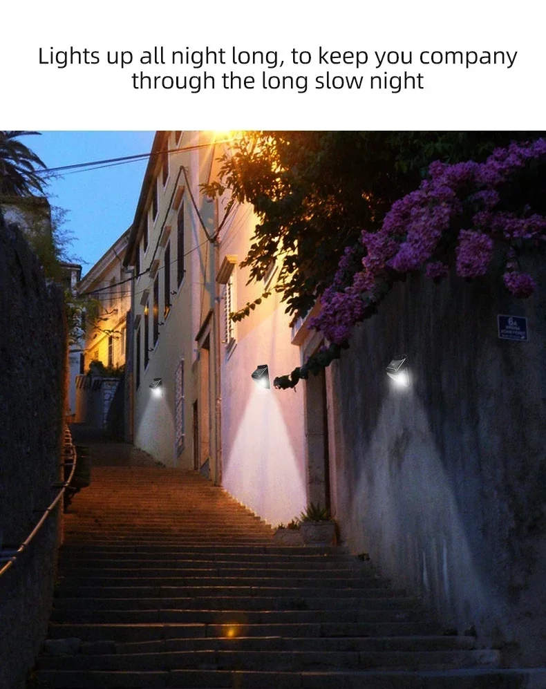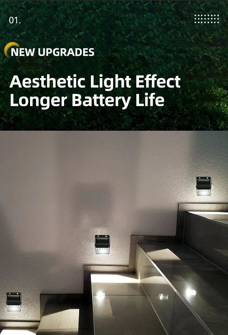 1. Wide application: IP65 outdoor solar lamp, suitable for garden, swimming pool, fence, courtyard, driveway, stairs, external wall, etc., heat resistant, weatherproof, no need to worry about outdoor damage