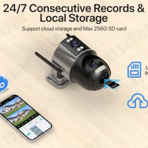 -The camera supports up to 256GB TF card local backup and also provides cloud storage service(Need to pay extra cost).