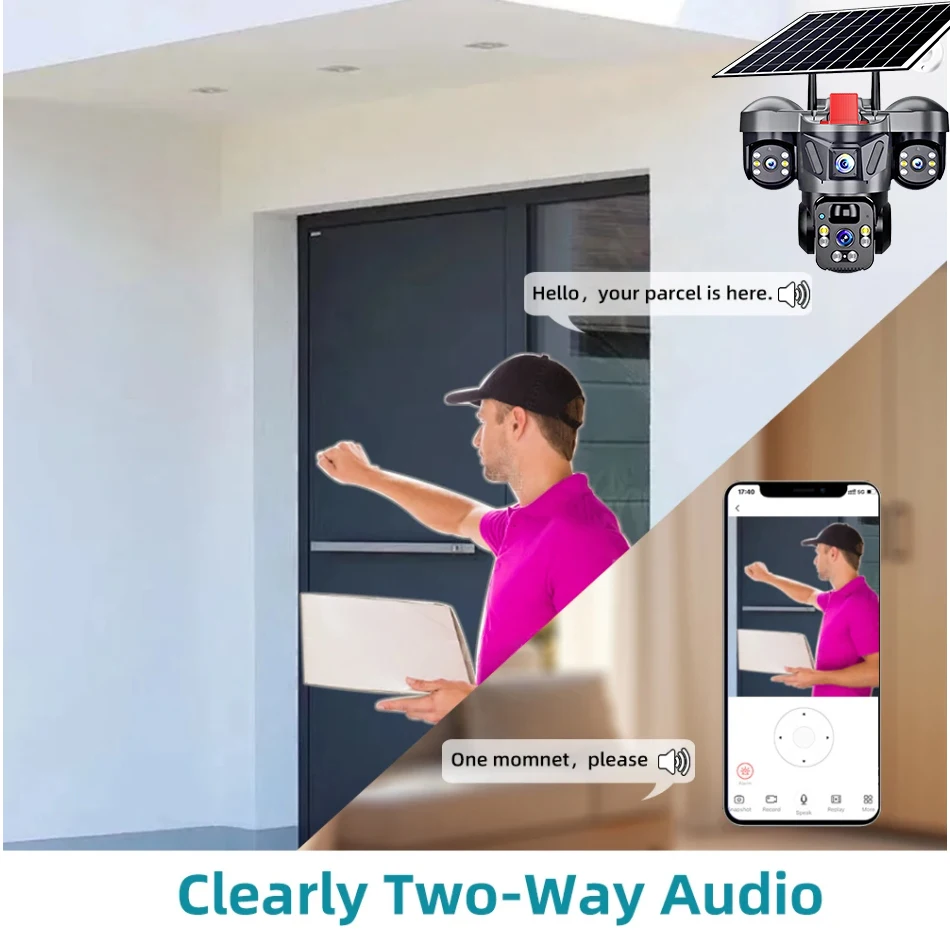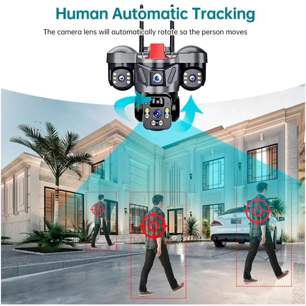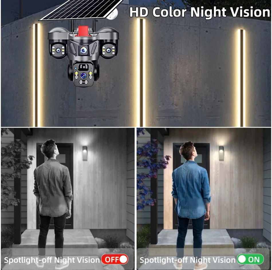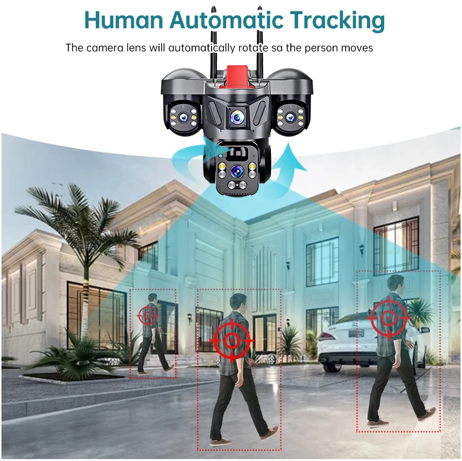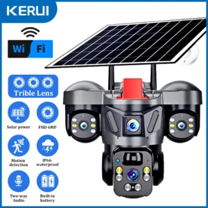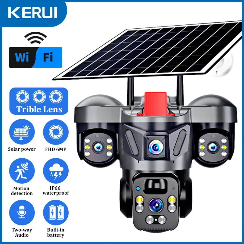 KERUI V380 Pro Outdoor PTZ 6MP WIFI 4G Solar Camera Home Security Triple Lens Camera Solar Panel CCTV Video Surveillance